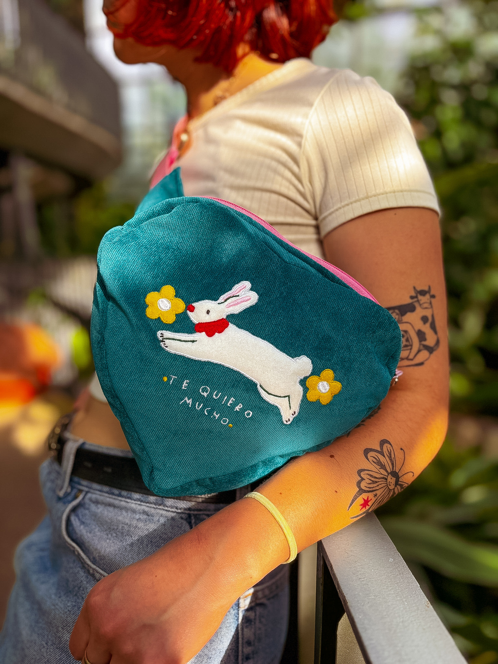 Corazón acolchonado en pana, con forro antifluidos, bordada y con riata graduable.
